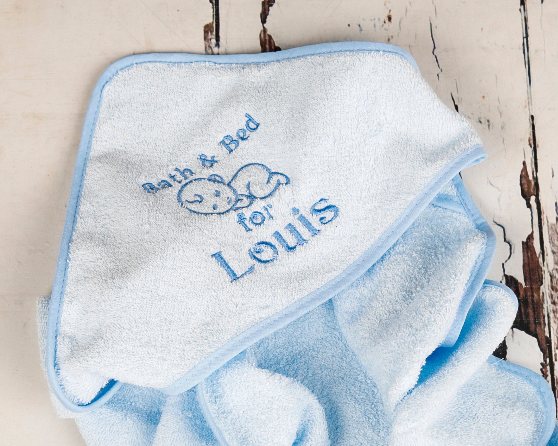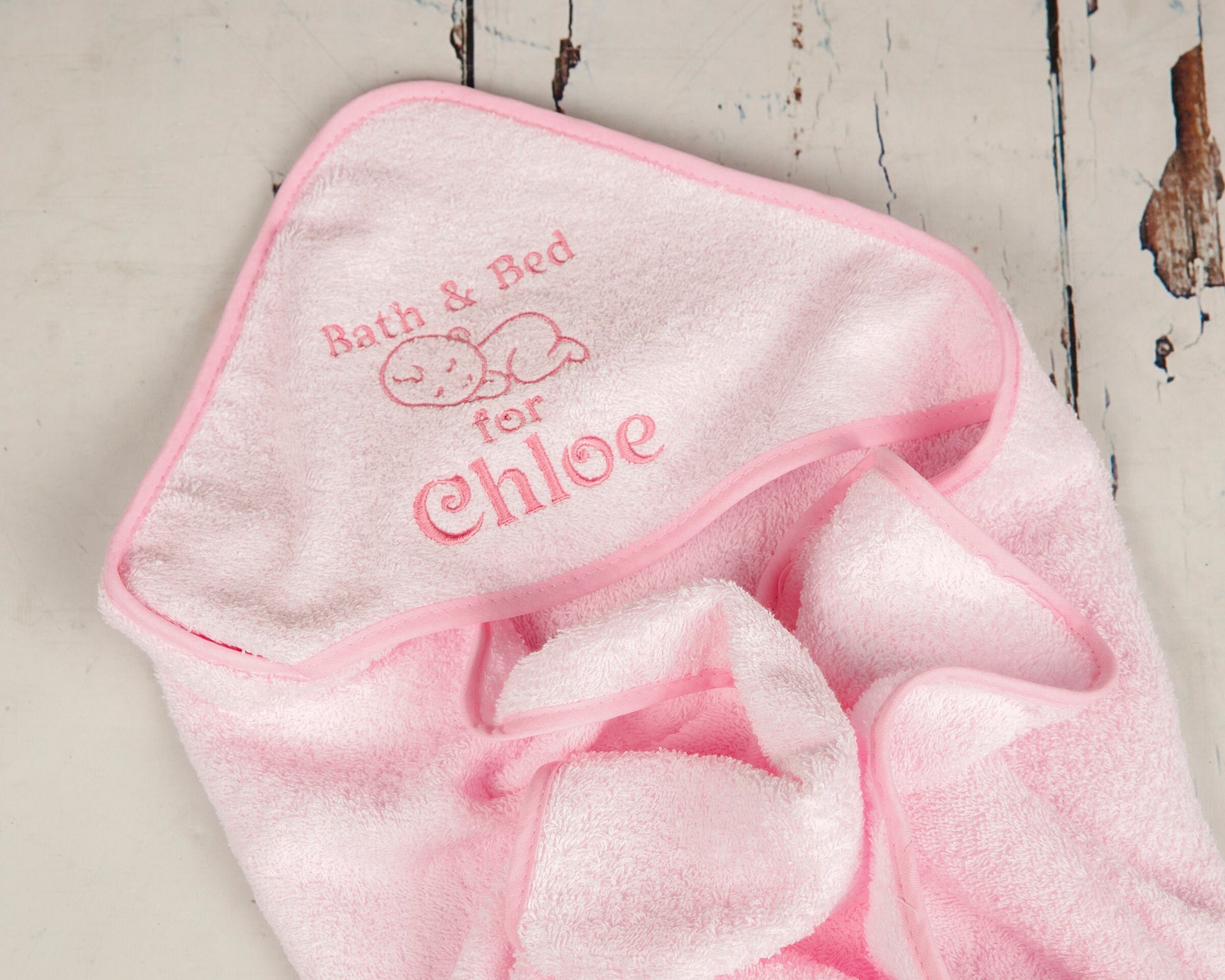Baby Hooded Bath Towel with Cute 'Sleeping Baby' PERSONALISED with Embroidery