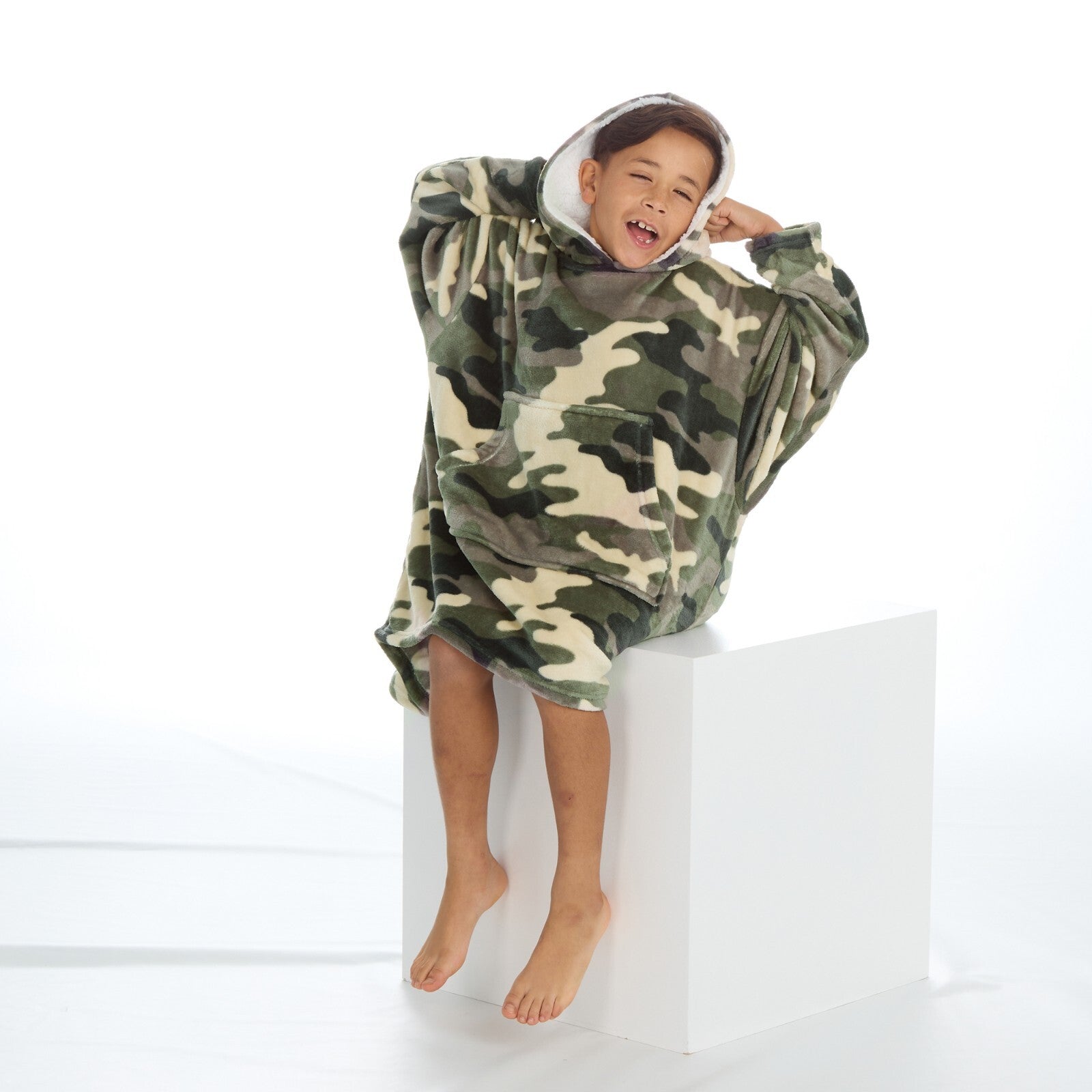 This Boys Over Sized Hoodie PJ in camouflage theme is perfect for boys aged 10 years and above. Made from 100% polyester fleece, it features long sleeves, a round neckline, and a pullover closure. The hoodie also has a hood for added comfort and warmth. Machine washable and in a vibrant multicoloured design, this oversized hoodie from Huggable Hoodies is ideal for keeping boys cosy during all seasons. Personalisation is available upon request.