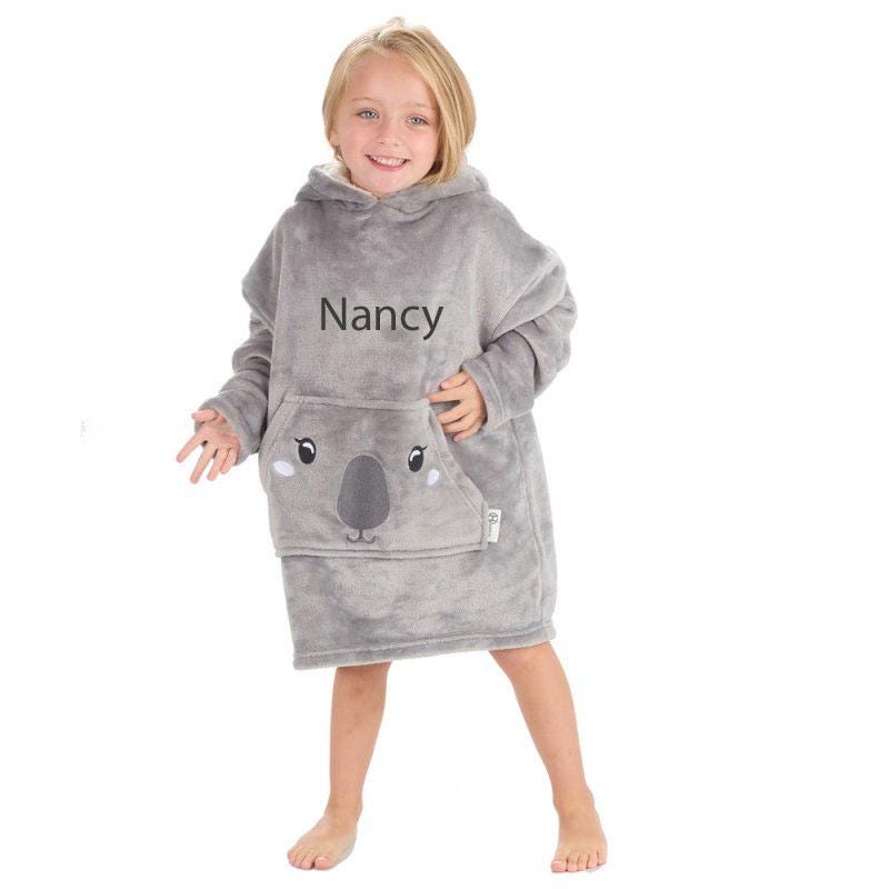 Childs Koala Face Oversized Hoodie Loungewear Soft Cosy Fleece Personalised with Embroidery Two sizes Range from 18 months to 6 years