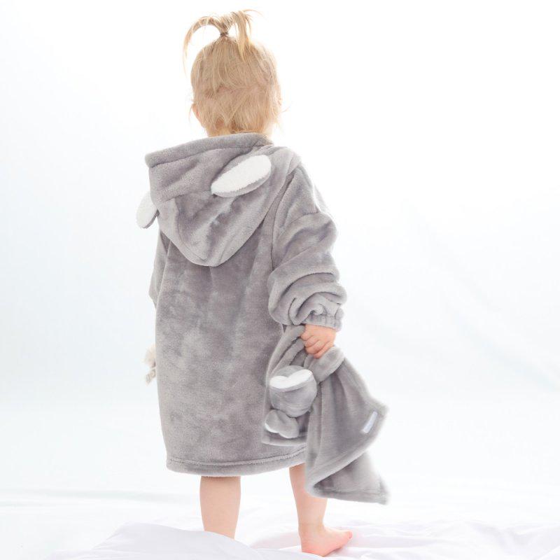 This adorable Koala face child‘s oversized hoodie, available in a lovely soft grey color, is the perfect way to keep little ones warm and cozy. Crafted from ultra-soft, plush fleece, it offers unbeatable comfort, while the luxurious fur-lined hood adds extra warmth and a playful touch. The cute teddy face design brings a fun element to the hoodie, making it a favorite for both boys and girls. The roomy kangaroo pocket provides a practical space to stash small treasures or keep tiny hands toasty on chilly days.
