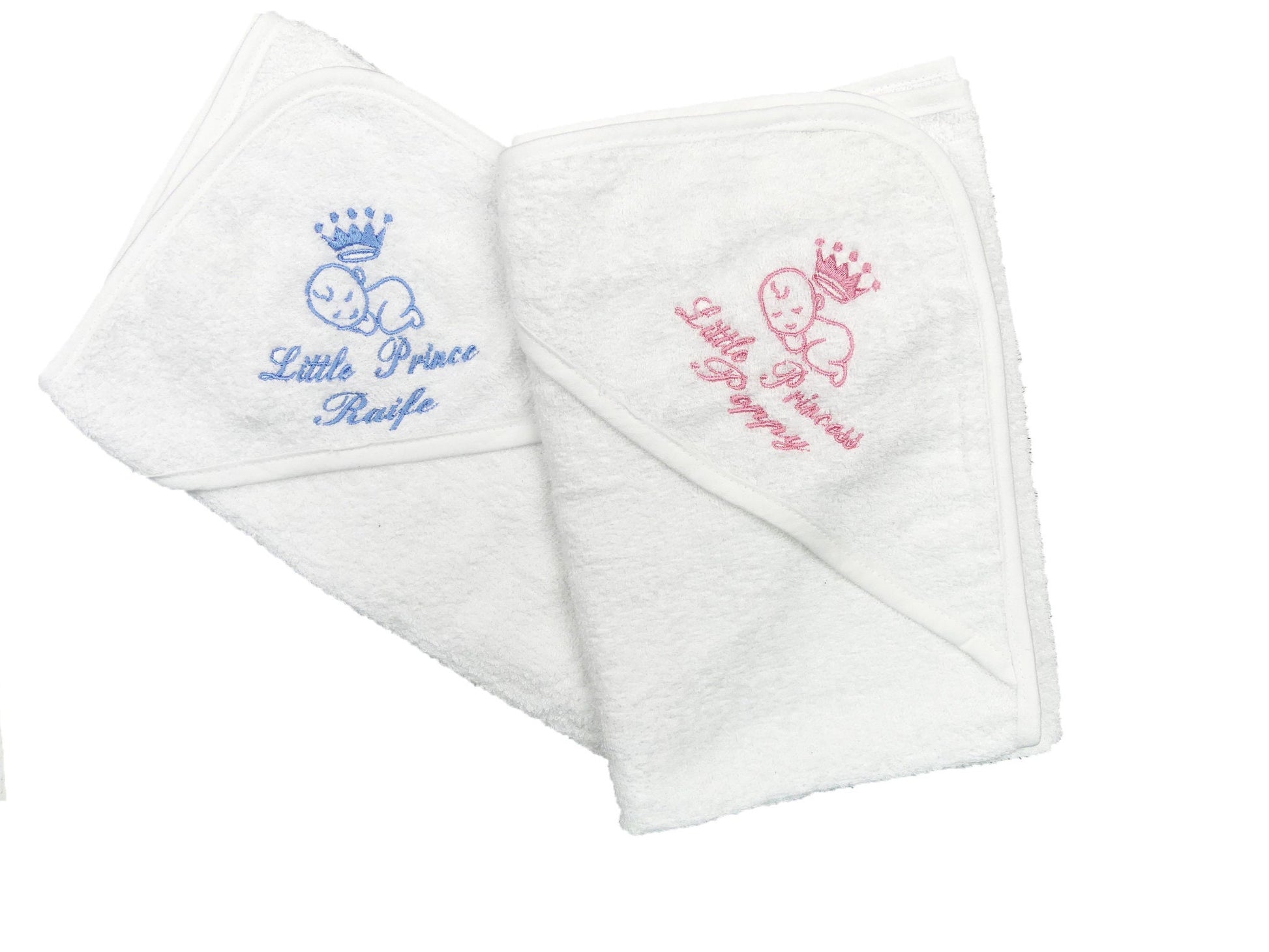 Hooded Baby Towel with PERSONALISED with EMBROIDERY 'Princess' or 'Prince' with cute Baby Motiff