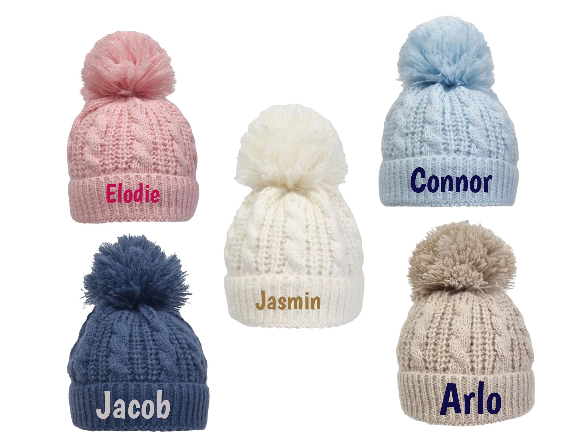 Personalised Baby Pom Pom Hat 0-12 Months Super Soft