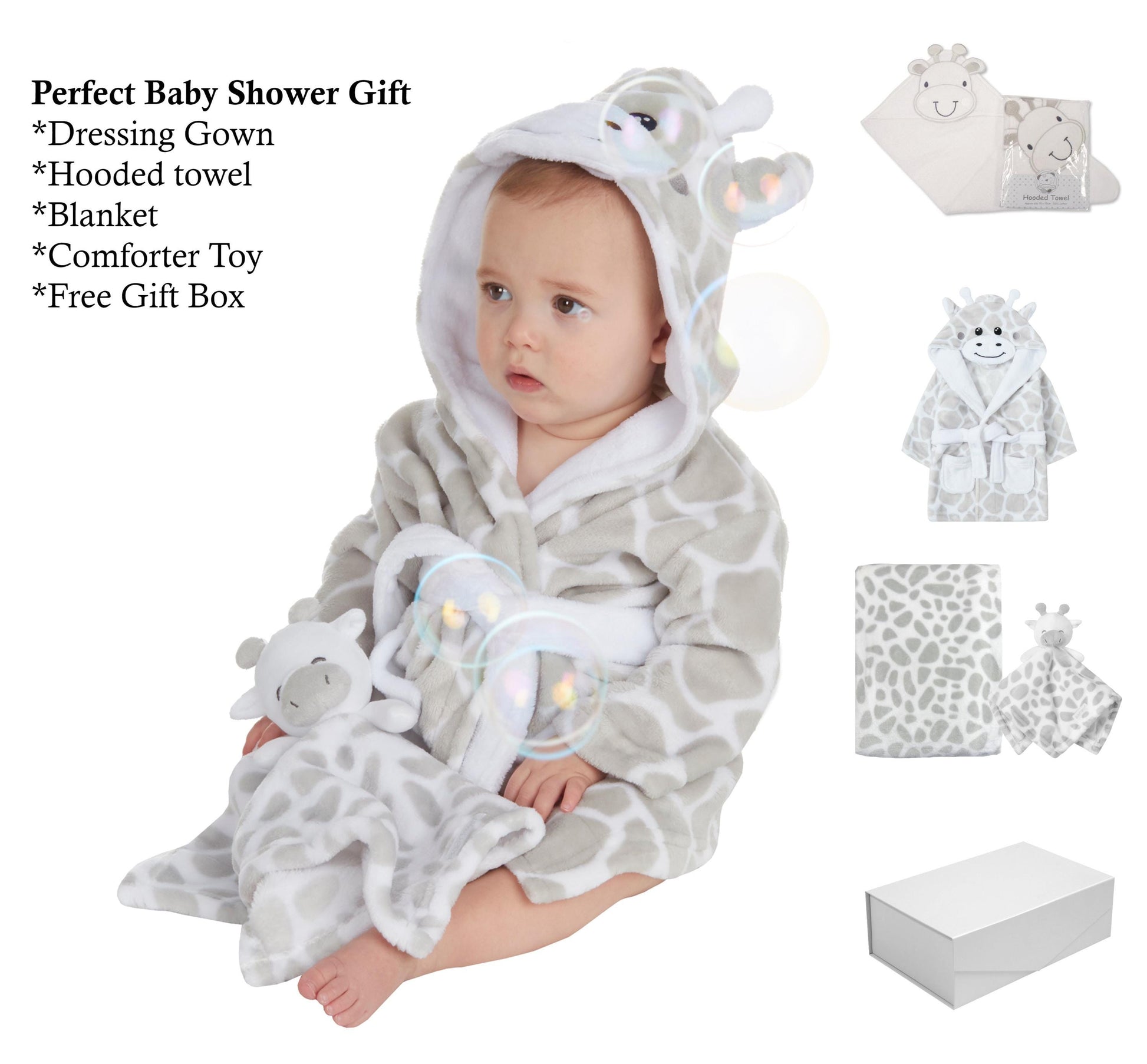 Personalised Baby Robe Giraffe Dressing Gown 0-6 Months Matching Personalised Comforter and Blanket Great baby Gift Perfect For Baby Showers