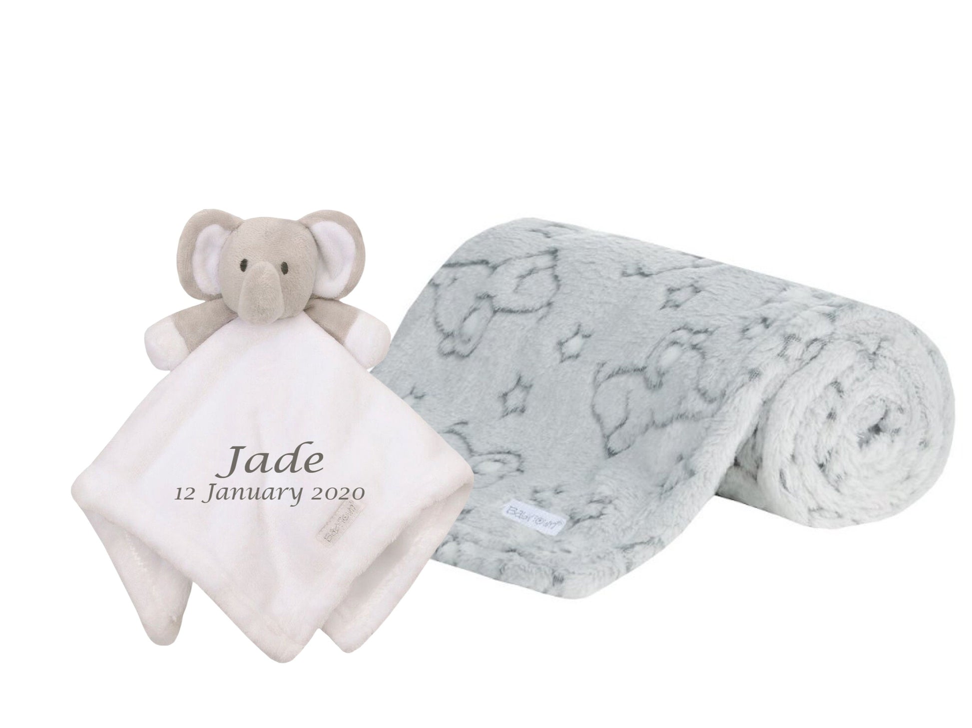Personalised Elephant Comforter with Matching Fleece Blanket: Customized Baby Shower Keepsake Gift