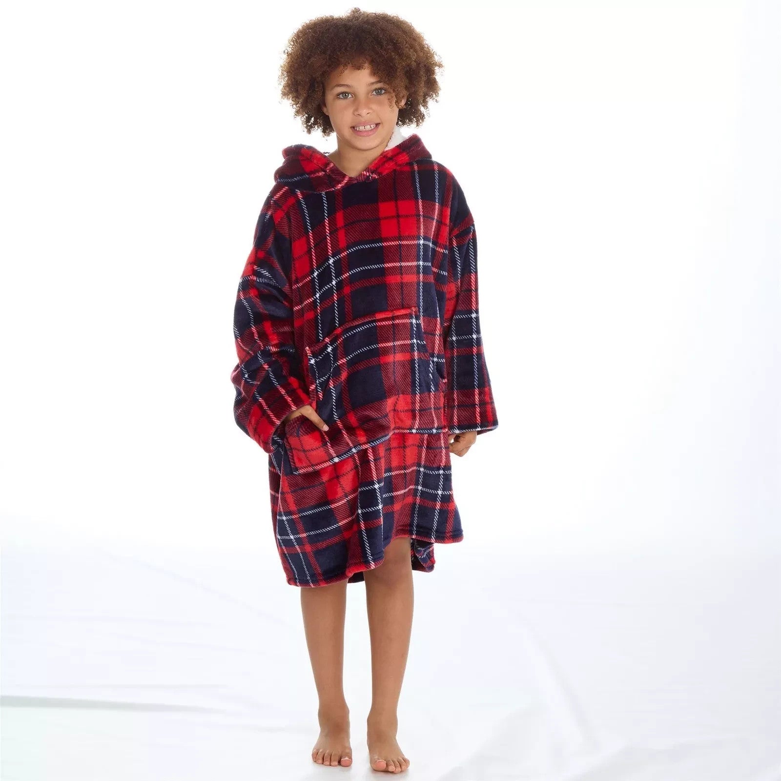 Personalised Kids Oversized Hoodie – Festive Tartan Loungewear 7-13 Years
