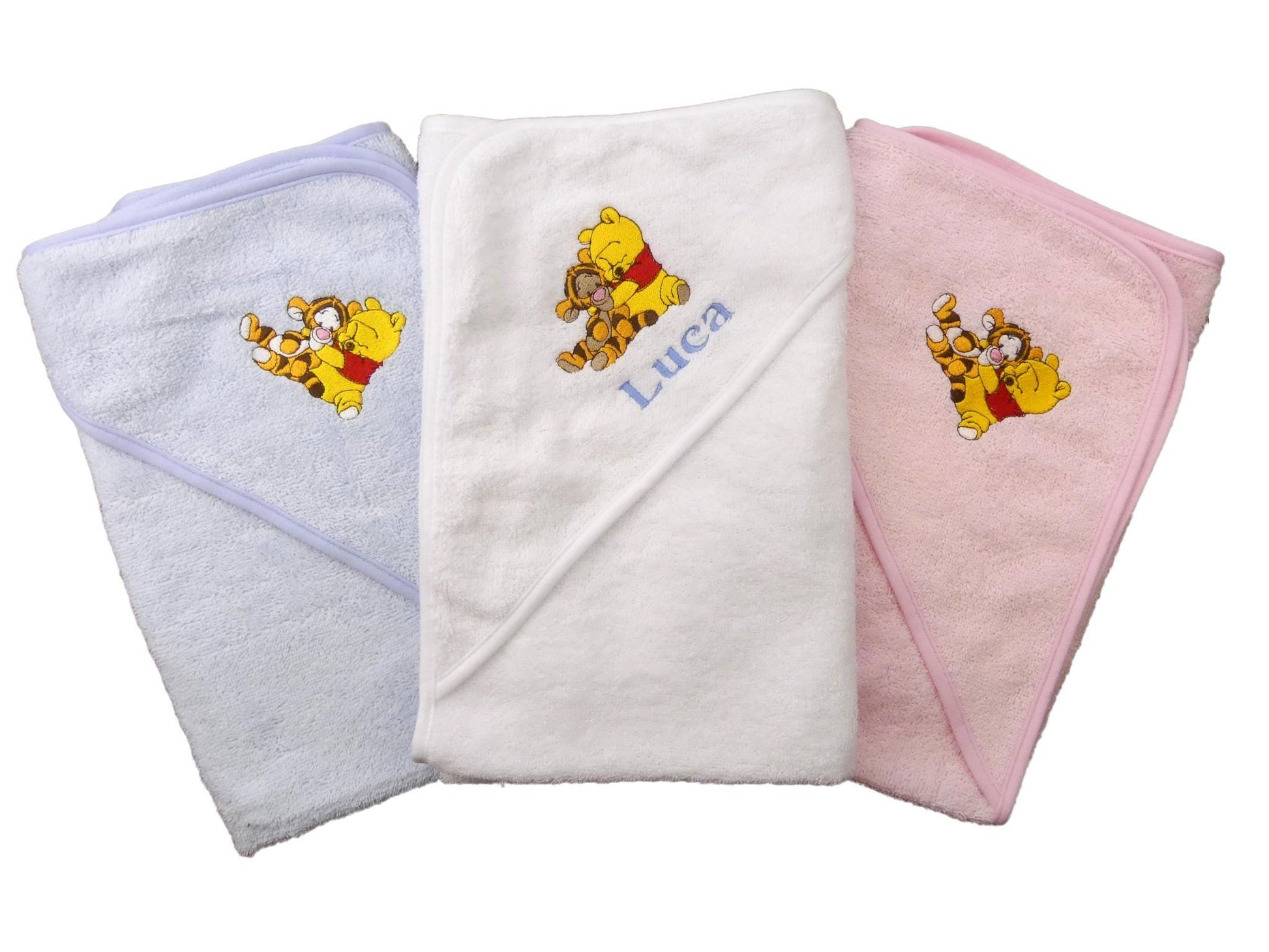 Winnie The Pooh Hooded Baby Towel PERSONALISED with EMBROIDERY Baby Name in choice of colours